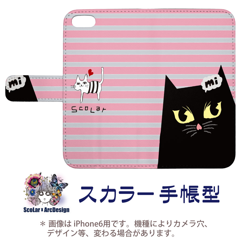 【200円OFFクーポン有】 AQUOS sense3 SH-02M 手帳型 スマホケース iPhone11 iPhone11 Pro スカラー ScoLar 全機種対応 カバー SHV45 SHV46 SH-04L SO-02L SO-01L SC-02M SC-01M アンドロイド 買い替え 黒猫 ピンク ネコ ボーダー ダイアリー かわいい