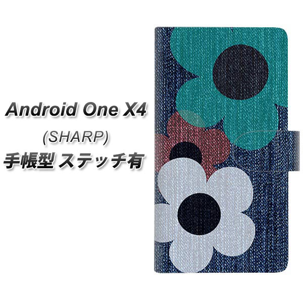 Android One X4 手帳型 スマホケース カバー 【ステッチタイプ】【EK869 ルーズフラワーinデニム】